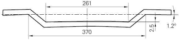 ⑴按模具设计手册,理论计算的回弹角数值为1.0°,推算出两翼平面度为1.31mm,下部平面度为3.32mm,数值相对偏大。